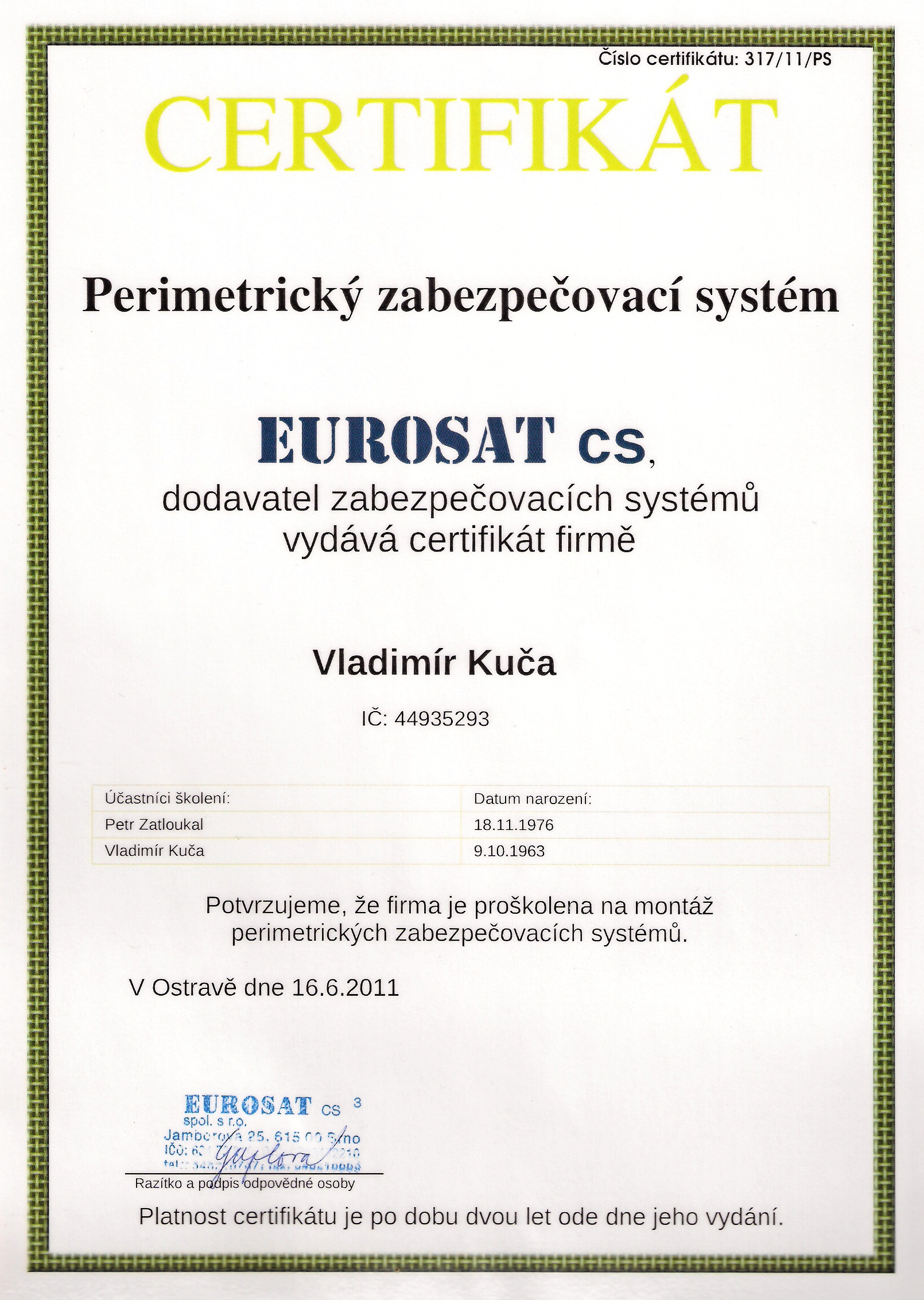 Certifikát Perimetr